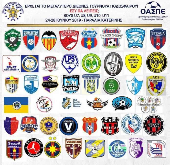 Ο ΟΑΣΠΕ προσκαλεί τις ελληνικές ποδοσφαιρικές ακαδημίες να αντιμετωπίσουν τις περισσότερες από 50 ρουμανικές, ουκρανικές, ρωσικές ποδοσφαιρικές σχολές στα γήπεδα της Παραλίας Κατερίνης από τις 25 ως τις 27 Ιουνίου! (Γήπεδο Καλλιθέας, Γήπεδο Παραλίας, Αθλητικό Κέντρο Olympian FC – Χρήστος Βελώνης)